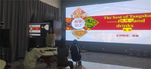 此次培训以晋鑫老师的获奖作品《The best of Tangshan -food and drinks》为核心案例,深度拆解优秀教学设计的创作思路与实践方法,巧妙的将课程思政与唐山本地特色深度融合,以“三段四环” 为核心框架搭建完整教学体系——既坚守 “以学生为主体” 的教学理念,通过多样化互动设计调动学生参与热情,又创新引入AI等现代化教学辅助工具,让课堂形式更丰富、教学效果更高效,为新教师提供了可借鉴、可落地的优秀范本。