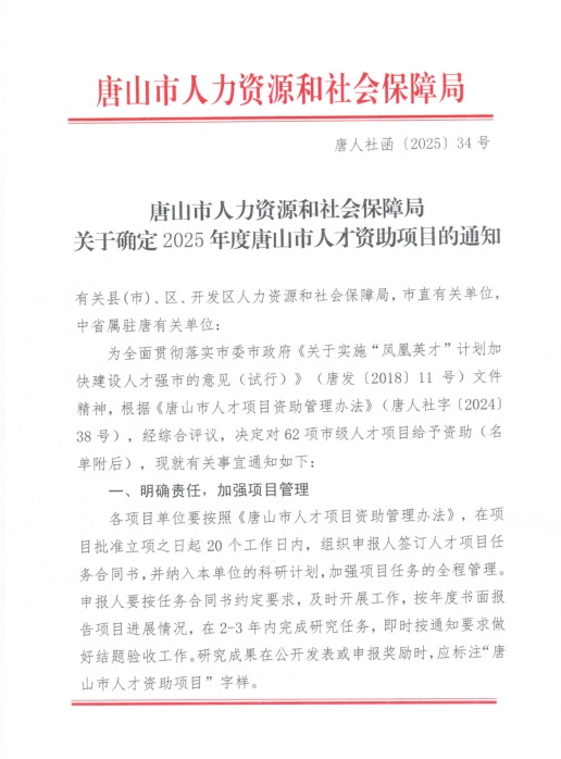 近日,唐山市人力资源和社会保障局发布《关于确定2025年度唐山市人才资助项目的通知》,滦州市职教中心凭借蔡宗海老师在中职教育赋能乡村振兴领域的突出实践成果成功入选,获2万元资助,是滦州市本年度唯一获得资助的单位。