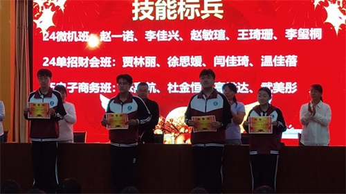 大会表彰了高二年级“技能标兵”和高一年级“军训优秀学员。