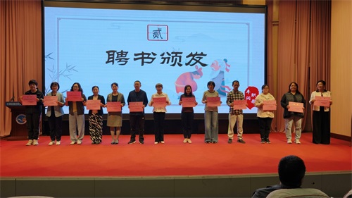 校党委委员、副校长韩志海分别为指导教师们颁发聘书。一张张聘书,承载的是信任,更是沉甸甸的责任。