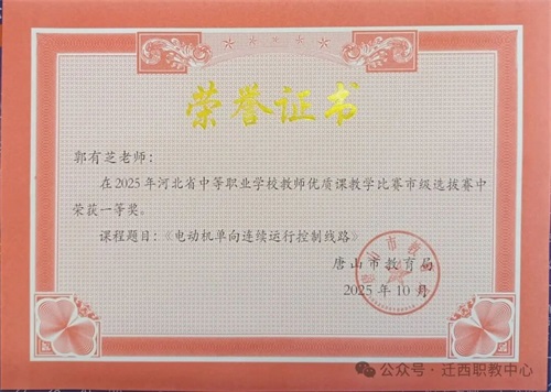 45名优秀教师获推荐代表唐山参加省级比赛,郭有芝老师便是其中一员,且在市级比赛中斩获电子电工类一等奖。