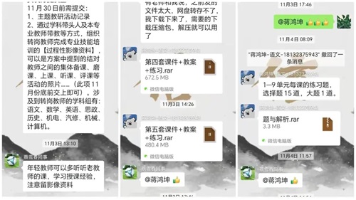 从“历史练习册需求统计”到教研活动筹备,组内通过接龙打卡明确进度;组长及时同步“教研活动记录填写、资料提交节点”等要求,让工作“有计划、有跟踪”。