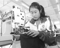 山东淄川校企共融构建现代职教模式,学生出校门进厂门。图为淄川区职教中心学生在实训基地加工服装。CFP ..